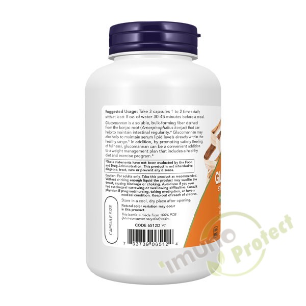 NOW Foods Glucomannan 575 mg (180 kapsula) sadrži glukomanan, topivo vlakno dobiveno iz korijena konjaka (Amorphophallus konjac). Glukomannan je poznat kao svestrano vlakno pogodno za upotrebu u kontekstu prehrane s ograničenim unosom energije.